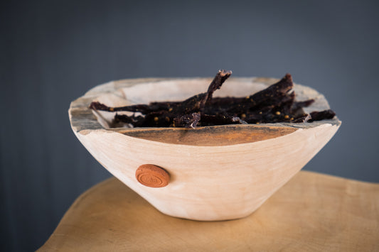 Jacaranda handcrafted wooden bowls can be used as a food bowl, or a decor item. Our talented carpenter is originally from Zimbabwe. He works with wood from the Jacaranda tree, which is sourced from the outskirts of Tshwane in South Africa. His craftsmanship, ethical and enthusiastic approach ensures our products are hand carved to perfection. Hand-carving preserves and celebrates the uniqueness of each individual item from Eat A Bit.